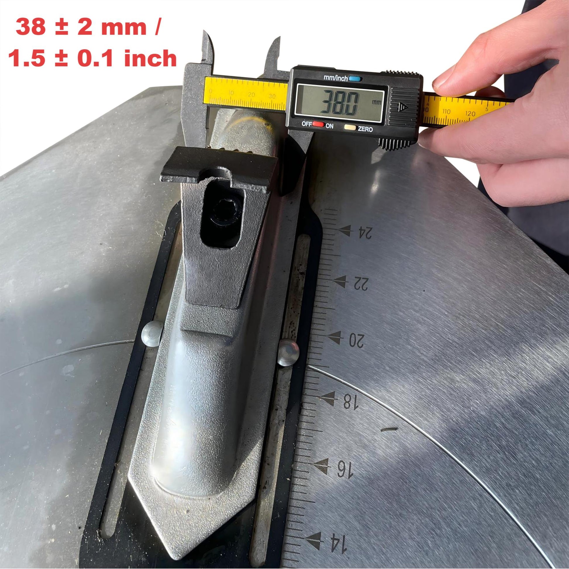 - TO ENSURE IF THE ADAPTER SUITS YOUR TIRE MACHINE, CHECK IF THE WIDTH OF THE CLAW IS AROUND 38MM AND THE HEIGHT OF THE CLAW IS AROUND 55MM. It can increase 4 inches and decrease 2 inches on your tire machine rim clamp size for changing tires of cars, ATV, Dirt Bike, Motorcycle.